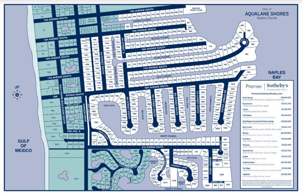 Originally developed in the 1950s, this private waterfront community was made out of the mangroves that had previously been deemed unusable. Quiet and relaxing, Aqualane Shores boasts some of the most coveted properties in Naples. Its central location makes this a highly sought-after spot for families and retirees, some who live here year-round and others who enjoy second homes for the winter season.