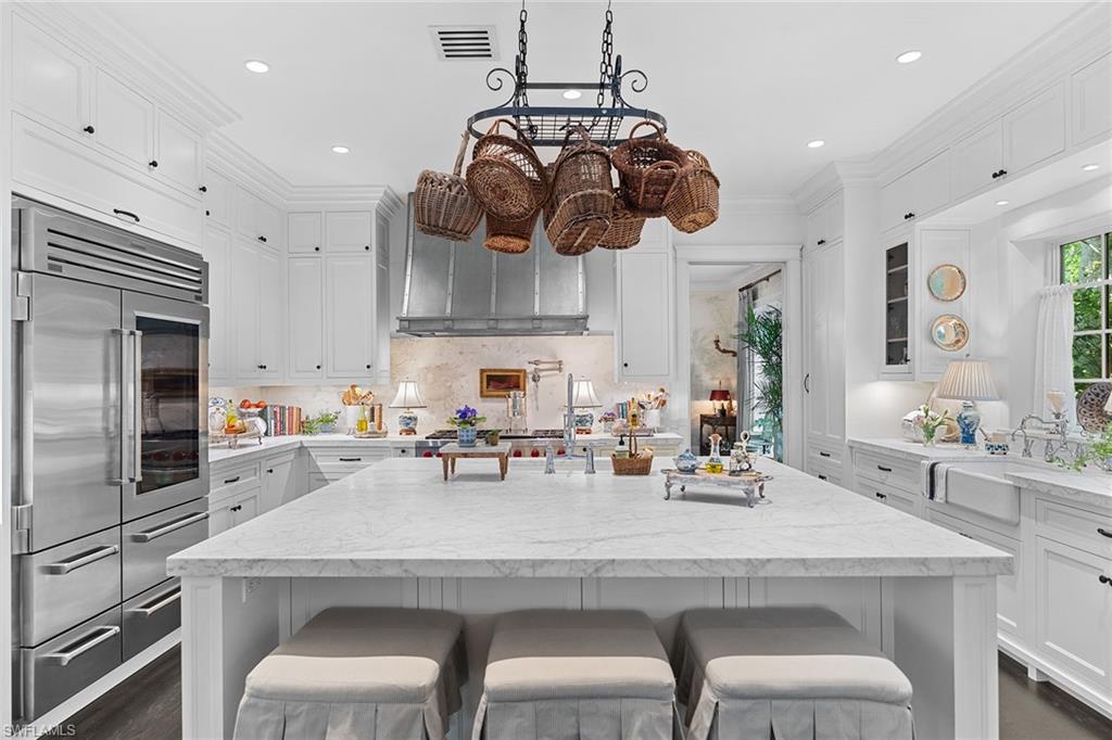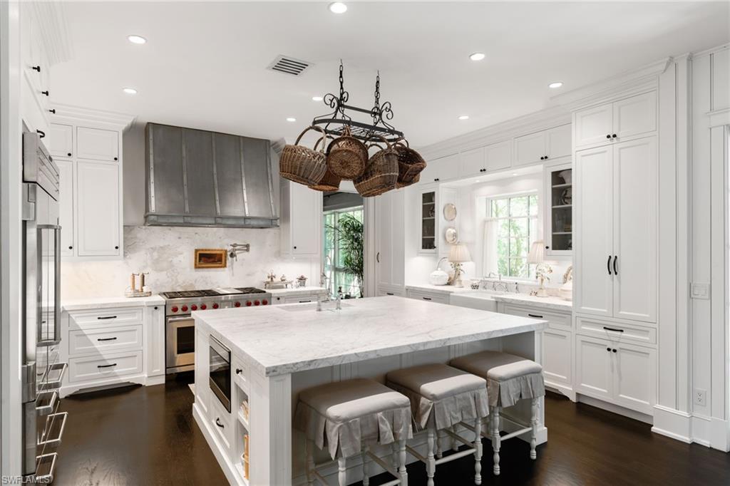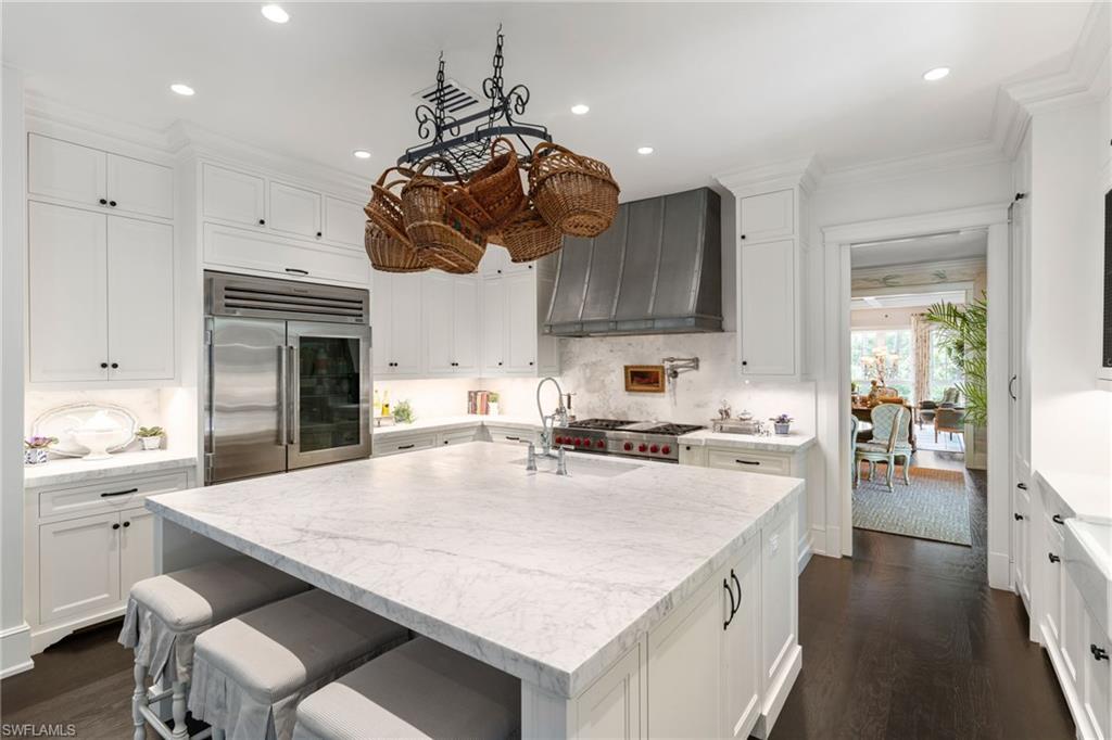 At the heart of the home, a newly completed chef's kitchen showcases custom cabinetry, a statement Wolf range and oven, Sub-Zero refrigerator and freezer, and a wine refrigerator -- blending exceptional function with timeless design. Hand-applied, artisanal wall finishes throughout add warmth, texture, and character, elevating each room with understated elegance.