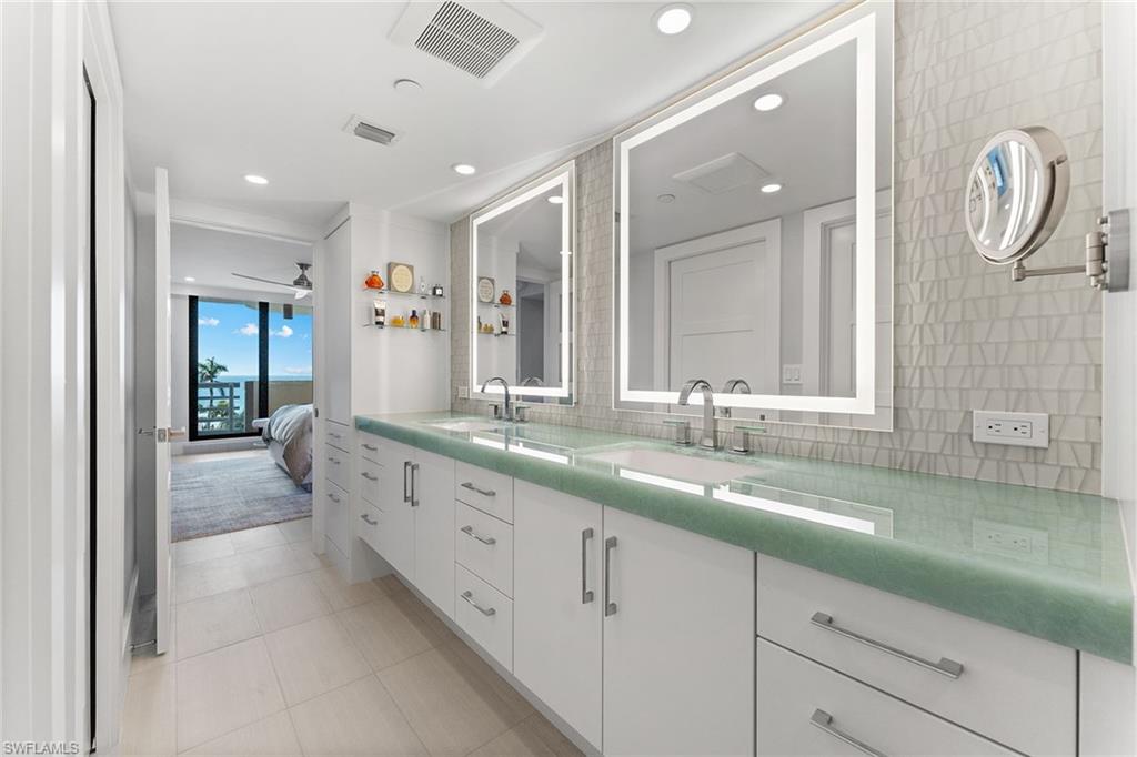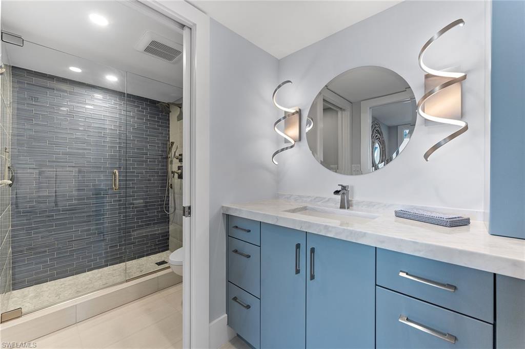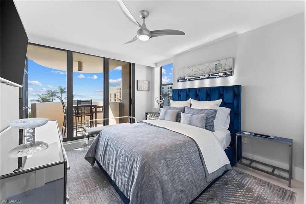In one of Naples desirable locations, this stunning residence offers captivating views of the gulf from the primary suite, as well as the bay. Thoughtfully designed by London Bay, the interior features two bedrooms plus a versatile bonus room, complemented by a sun-filled lanai and two private balconies, ideal for enjoying Southwest Florida's breathtaking sunsets. Recently updated with all-new electrical and plumbing, the home seamlessly blends modern comfort with timeless coastal charm. The kitchen is a showpiece, boasting exquisite Calcite Blue marble countertops, while the office and laundry areas are adorned with sleek Pompeii quartz. Deeded beach access across the street. Ideally within walking distance of The Village for premier shopping and dining, and just minutes from downtown Naples and Fifth Avenue, this property offers the best of convenience and luxury. Residents also enjoy exclusive membership access to Moorings Beach Park, providing private beach access for ultimate relaxation. Experience the essence of Florida living at its finest.