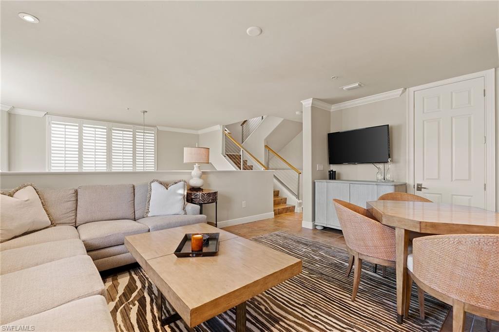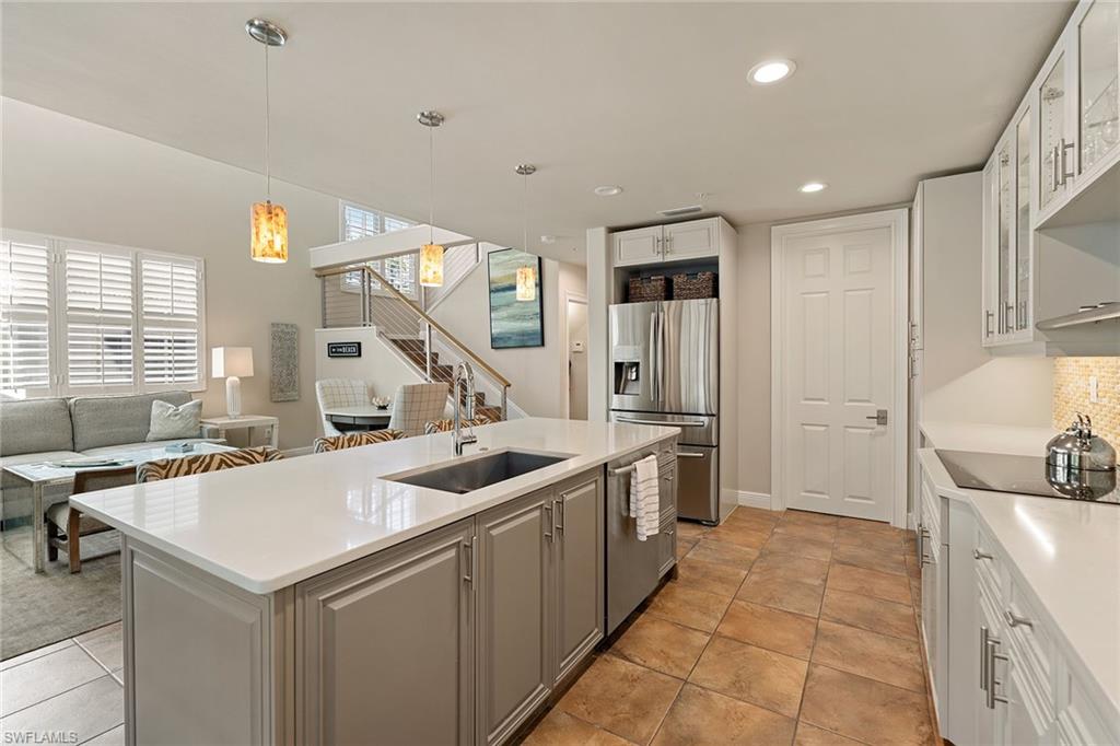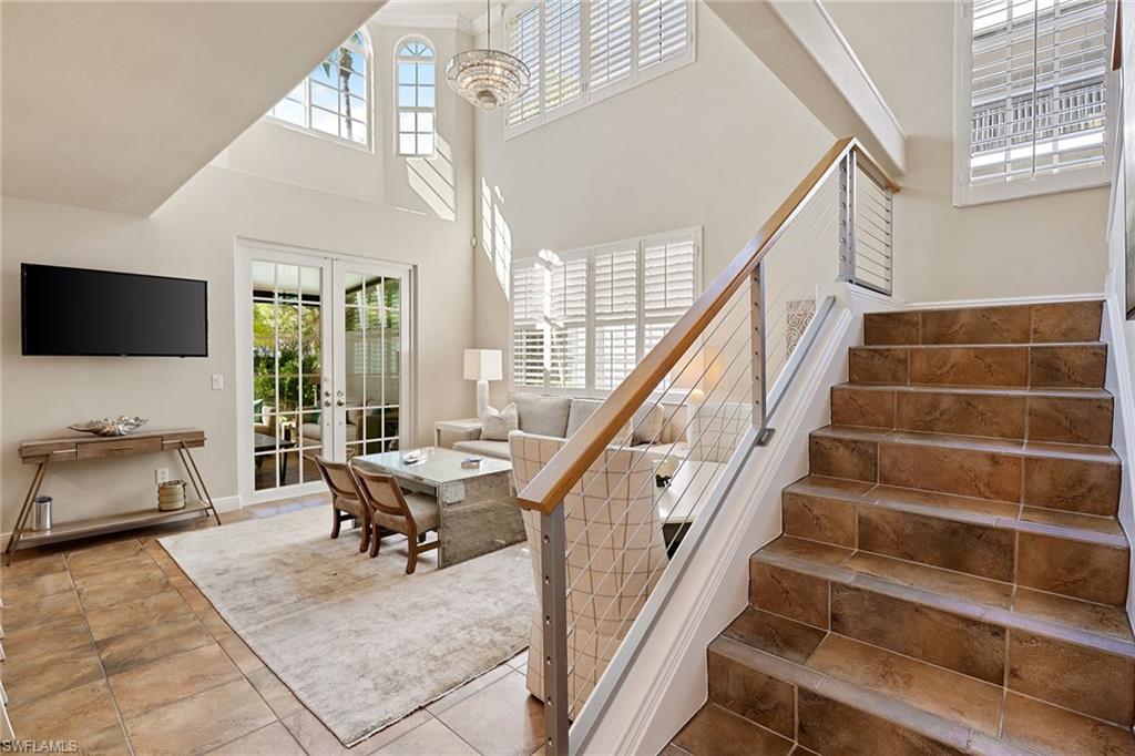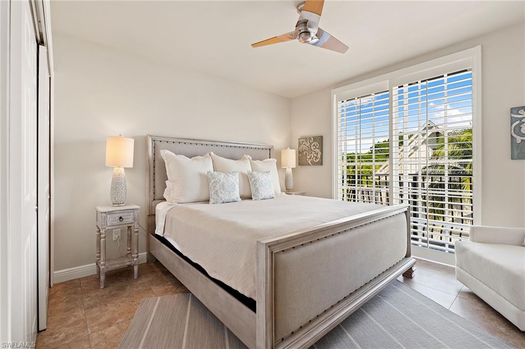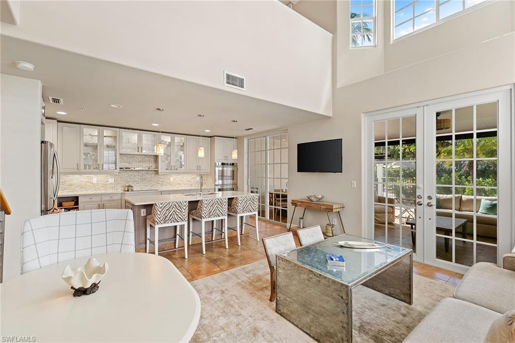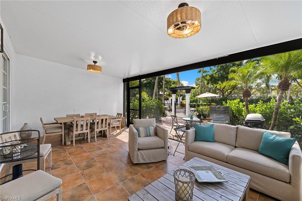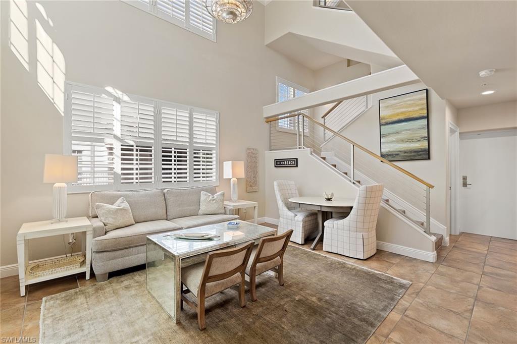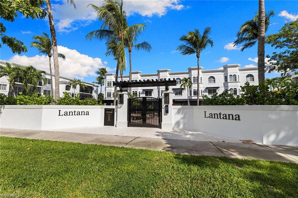 This four-bedroom, three-story attached villa in Lantana offers a rare opportunity to own one of only two end units in the community. Just one block off 5th Avenue and three blocks from Naples white-sand beaches, the home enjoys abundant natural light, privacy and an exceptional location. An updated, open kitchen with large attached screened lanai lends itself to leisurely dining and entertaining. There is a powder room on the main level. Designed for flexibility, it features dual primary suites, one on the second floor with a walk-in closet, en-suite bath and in-suite laundry, and another on the third floor also with walk-in closet and en-suite bath. There are an additional two guest bedrooms and full bath creating a private guest level with their laundry room. Additional highlights include a two-car garage, private elevator, whole-house water filtration system, and updates such as new HVAC system (2019), new roof (2025) and newly updated garage door opening system (2025). Sold furnished, this residence is move-in ready. All Lantana units and garages have remained dry through past storms, according to the owners, and offer lush gardens, two pools and two spas, all within a peaceful tropical setting just a short distance from 5th Avenue and the beach.