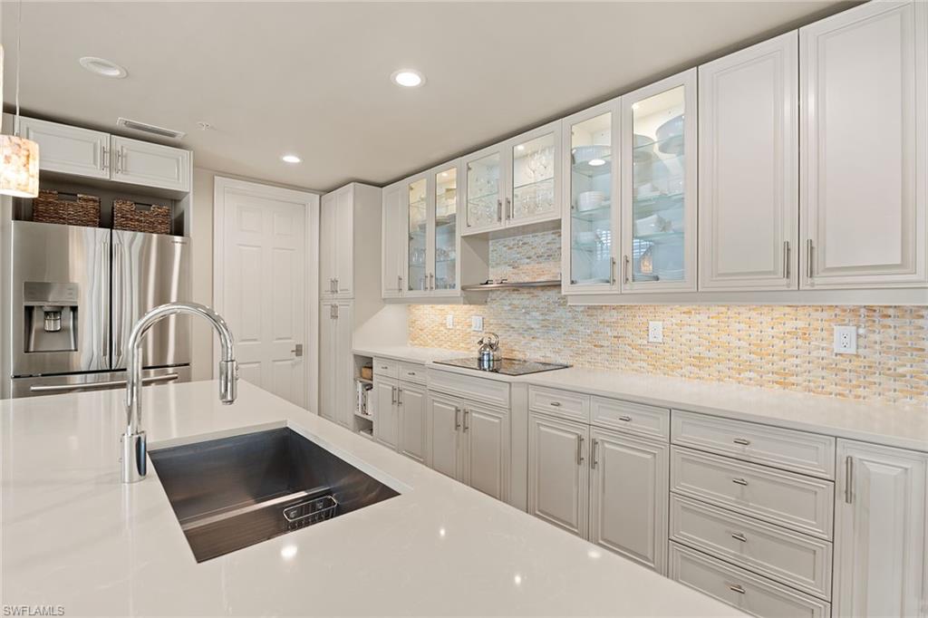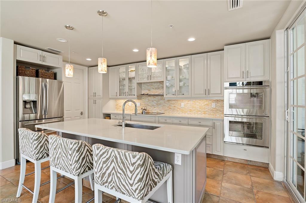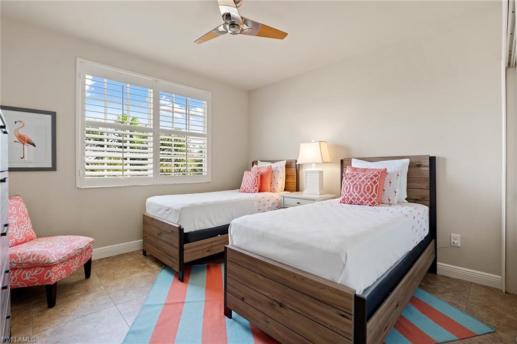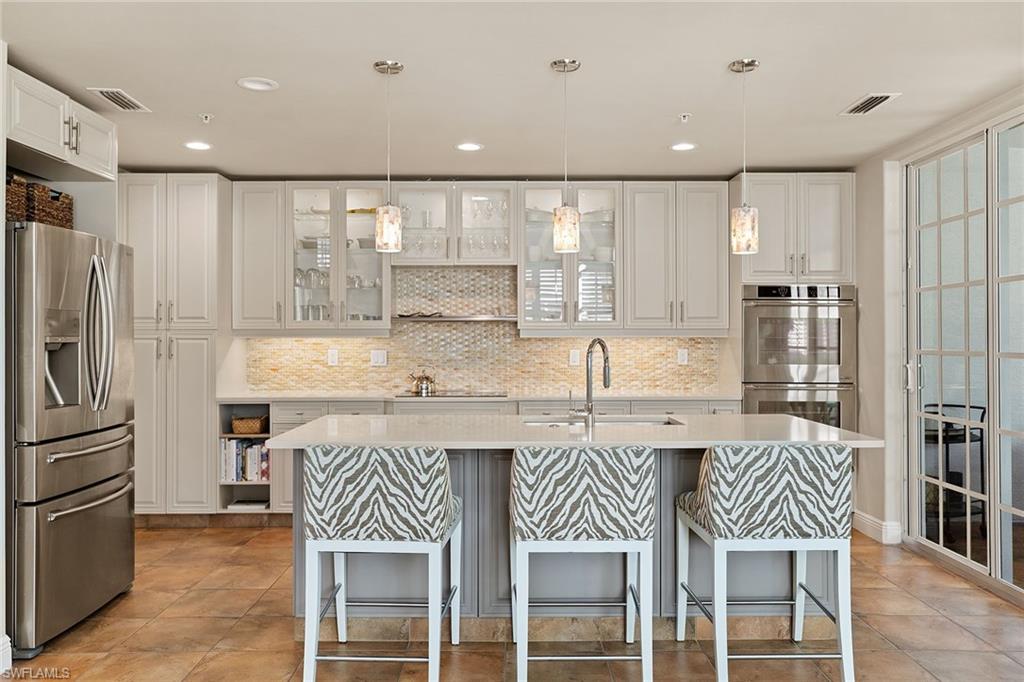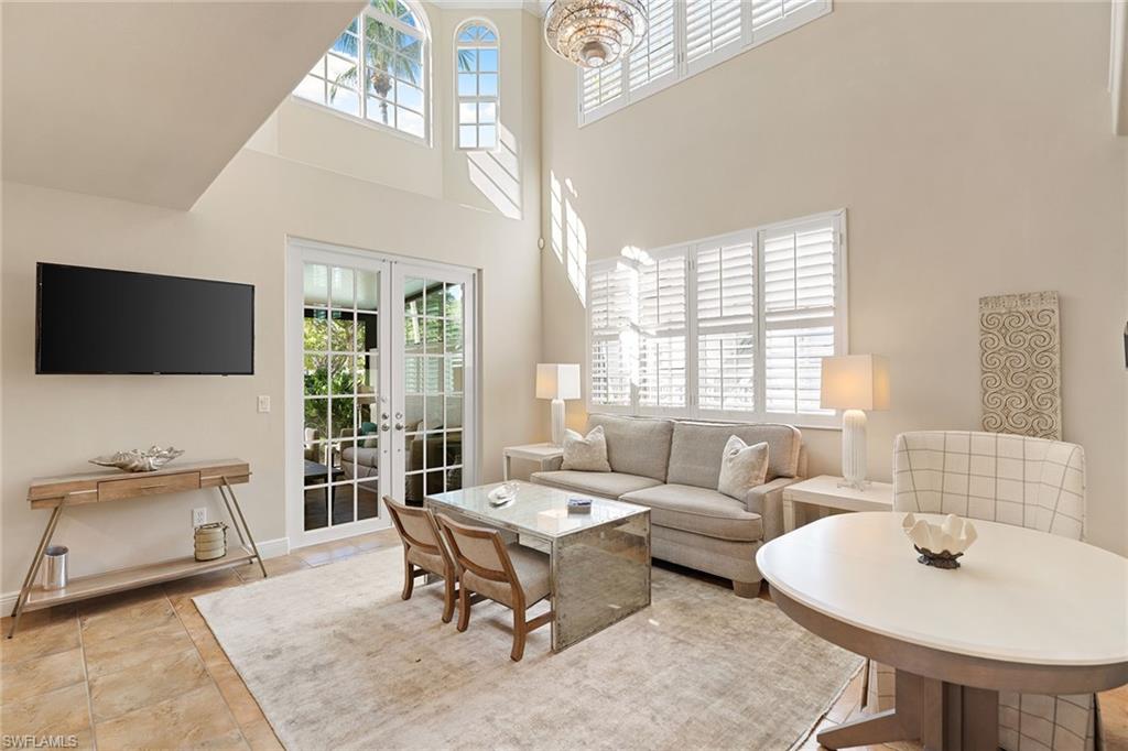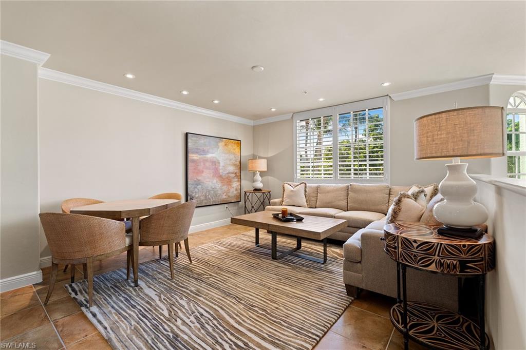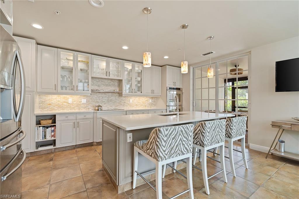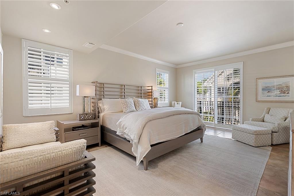 This four-bedroom, three-story attached villa in Lantana offers a rare opportunity to own one of only two end units in the community. Just one block off 5th Avenue and three blocks from Naples white-sand beaches, the home enjoys abundant natural light, privacy and an exceptional location. An updated, open kitchen with large attached screened lanai lends itself to leisurely dining and entertaining. There is a powder room on the main level. Designed for flexibility, it features dual primary suites, one on the second floor with a walk-in closet, en-suite bath and in-suite laundry, and another on the third floor also with walk-in closet and en-suite bath. There are an additional two guest bedrooms and full bath creating a private guest level with their laundry room. Additional highlights include a two-car garage, private elevator, whole-house water filtration system, and updates such as new HVAC system (2019), new roof (2025) and newly updated garage door opening system (2025). Sold furnished, this residence is move-in ready. All Lantana units and garages have remained dry through past storms, according to the owners, and offer lush gardens, two pools and two spas, all within a peaceful tropical setting just a short distance from 5th Avenue and the beach.